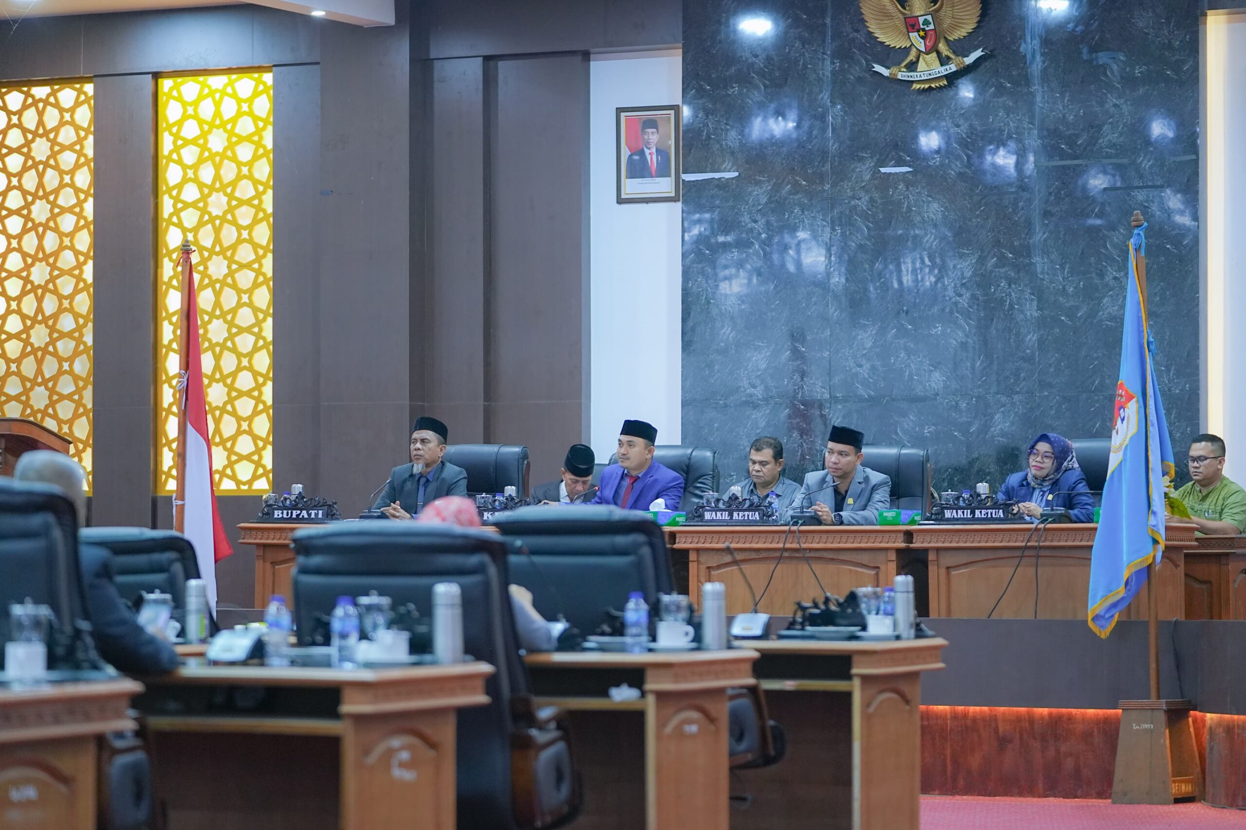 DISTORI.ID – Penjabat (Pj) Bupati Nagan Raya, Aceh Fitriany Farhas diwakili Sekretaris Daerah (Sekda) Ardimartha menghadiri Rapat Paripurna dalam rangka Penyampaian Pendapat Badan Anggaran (Banggar) dan Penyampaian Pandangan Umum Fraksi-fraksi Dewan terhadap Qanun Kabupaten Nagan Raya tentang pertanggungjawaban pelaksanaan Anggaran Pendapatan dan Belanja Kabupaten (APBK) tahun anggaran 2023.