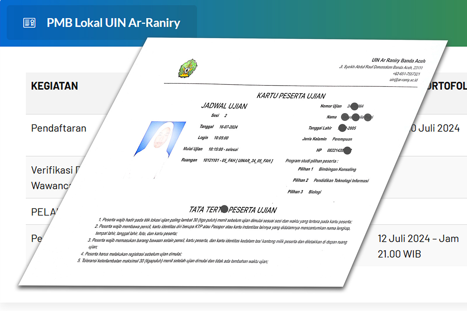 Untuk informasi lebih lanjut mengenai pendaftaran dan cetak kartu ujian, calon mahasiswa dapat mengakses situs resmi UIN Ar-Raniry atau menghubungi panitia admisi. []