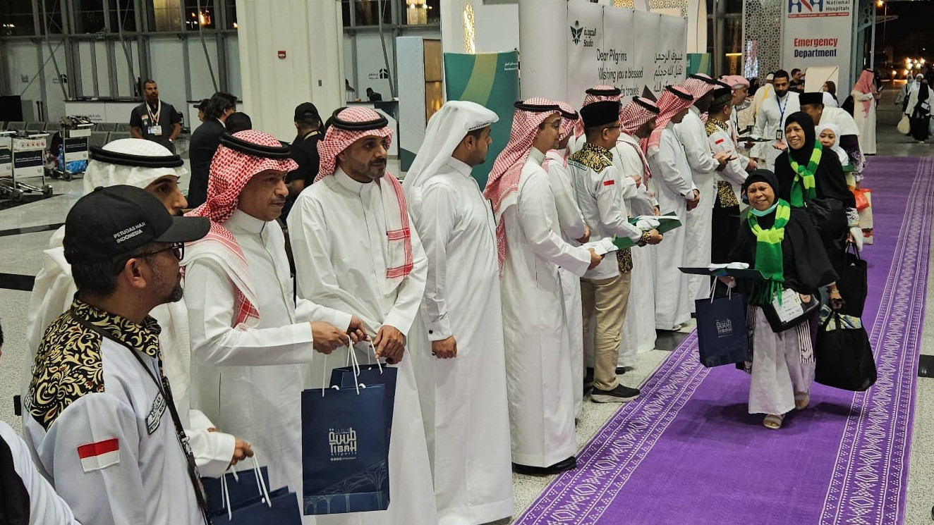 Mereka dengan pakaian khas Arab berjejer melepas dan menyapa satu persatu jemaah haji kloter 30-KJT dengan bahasa Indonesia, “Selamat jalan, terima kasih. Insya Allah mabrur,” sambil menyerahkan suvenir berupa foto Haramain dalam satu map berlogo Saudia Airlines dan snack (makanan ringan). []