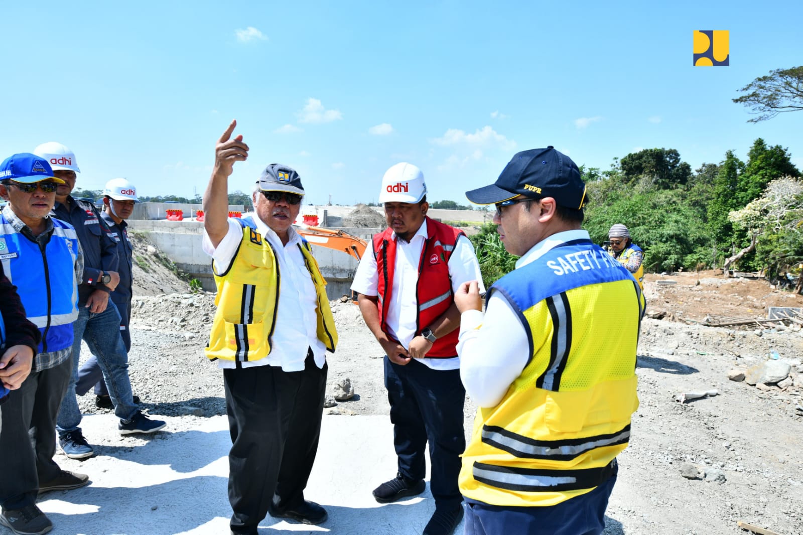 Turut hadir mendampingi Menteri Basuki, Direktur Jenderal Cipta Karya Diana Kusumastuti, Staf Ahli Menteri Bidang Teknologi, Industri, dan Lingkungan Endra S. Atmawidjaja, dan Kepala Balai Besar Pelaksanaan Jalan Nasional (BBPJN) Jawa Tengah – DIY Rien Marlia. []