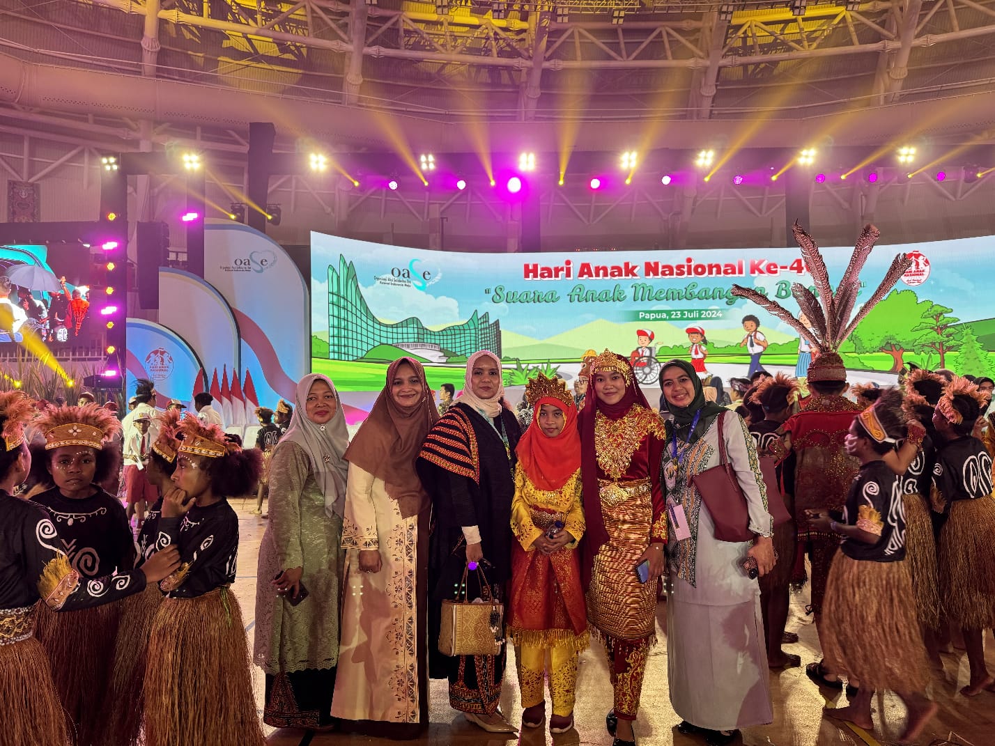 DISTORI.ID – Penjabat Ketua TP PKK Provinsi Aceh Mellani Subarni bersama dengan Ketua DWP Aceh Nurmanziah menghadiri acara kegiatan puncak Hari Anak Nasional di Istora Papua Bangkit Kabupaten Jayapura, Papua, pada Selasa 23 Juli 2024 lalu .