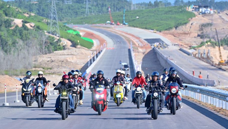 “Ya tadi mencoba jalan itu paling gampang kalau kita naik sepeda motor. Ada gini sedikit saja akan terasa. Dan tadi saya mengajak beliau-beliau ini semuanya naik motor merasakan jalan tol menuju IKN,” ujar Jokowi dalam keterangannya kepada awak media di kawasan IKN.