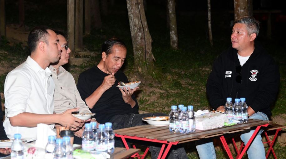 DISTORI.ID – Usai meninjau sejumlah progres pembangunan di Ibu Kota Nusantara (IKN), Presiden Joko Widodo didampingi Iriana Joko Widodo mengajak para penggiat seni dan pemengaruh (influencer) Tanah Air makan malam bersama di kawasan glamping IKN, pada Minggu malam (28/7/2024). Beragam menu yang disajikan antara lain nasi goreng, kambing guling, bakso, mie ayam, mie godok, sushi, hingga burger.