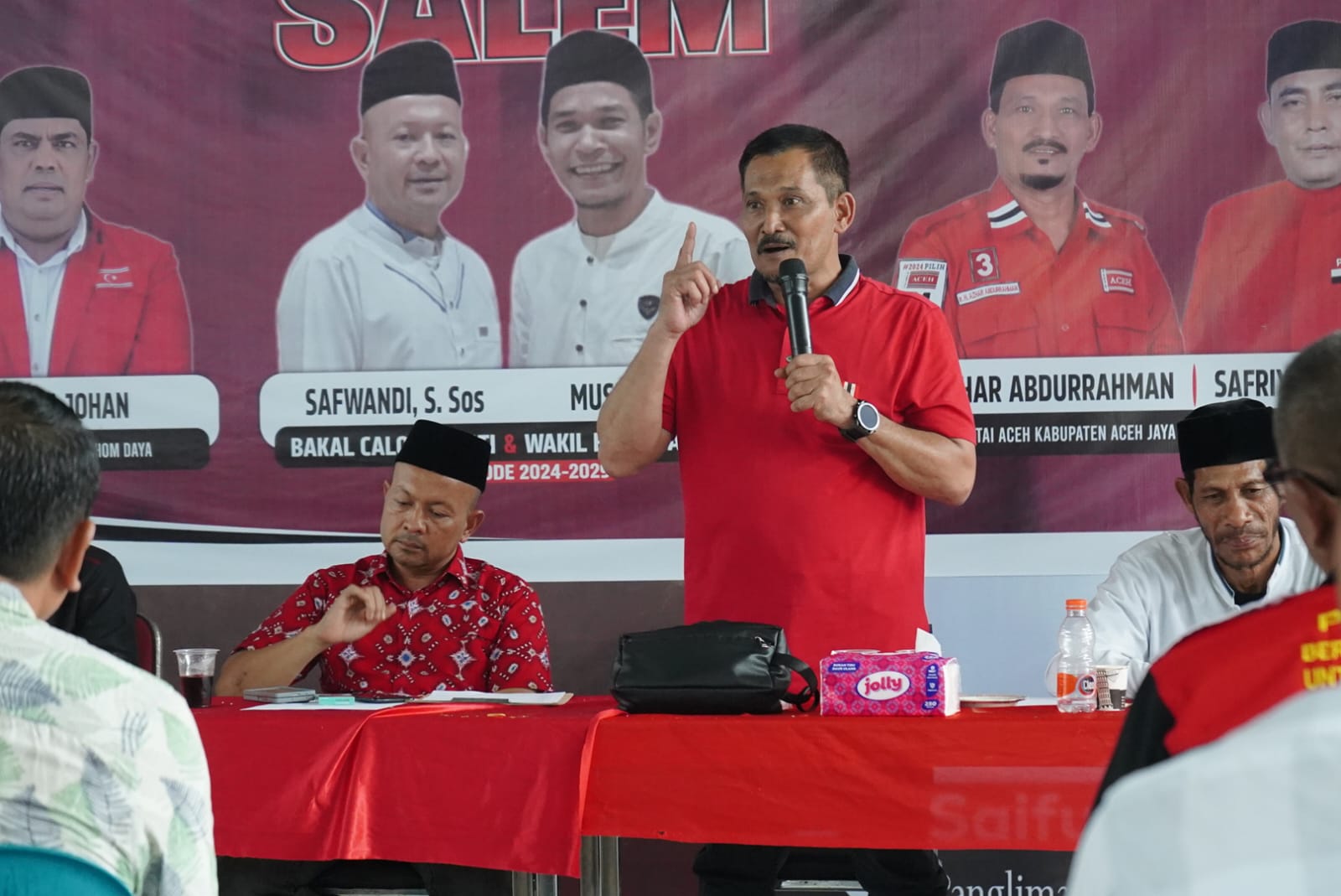Pada acara konsolidasi Bakal Calon Bupati Aceh Jaya dan Wakil Bupati, Safwandi-Muslem dengan Jajaran KPA/Eks Kombatan Gam dan pengurus Dewan Pimpinan Sagoe Partai Aceh Se Aceh Jaya, pada acara tersebut juga dibentuk tim Pemenangan Calon Gubernur Aceh Muzakir Manaf (Mualem).