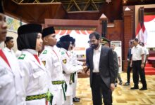 DISTORI.ID – Penjabat (Pj) Gubernur Aceh, Bustami Hamzah, secara resmi mengukuhkan anggota Pasukan Pengibar Bendera Pusaka (Paskibraka) Aceh yang akan bertugas pada upacara peringatan Hari Ulang Tahun (HUT) Republik Indonesia ke-79 di lapangan Blang Padang, Banda Aceh.