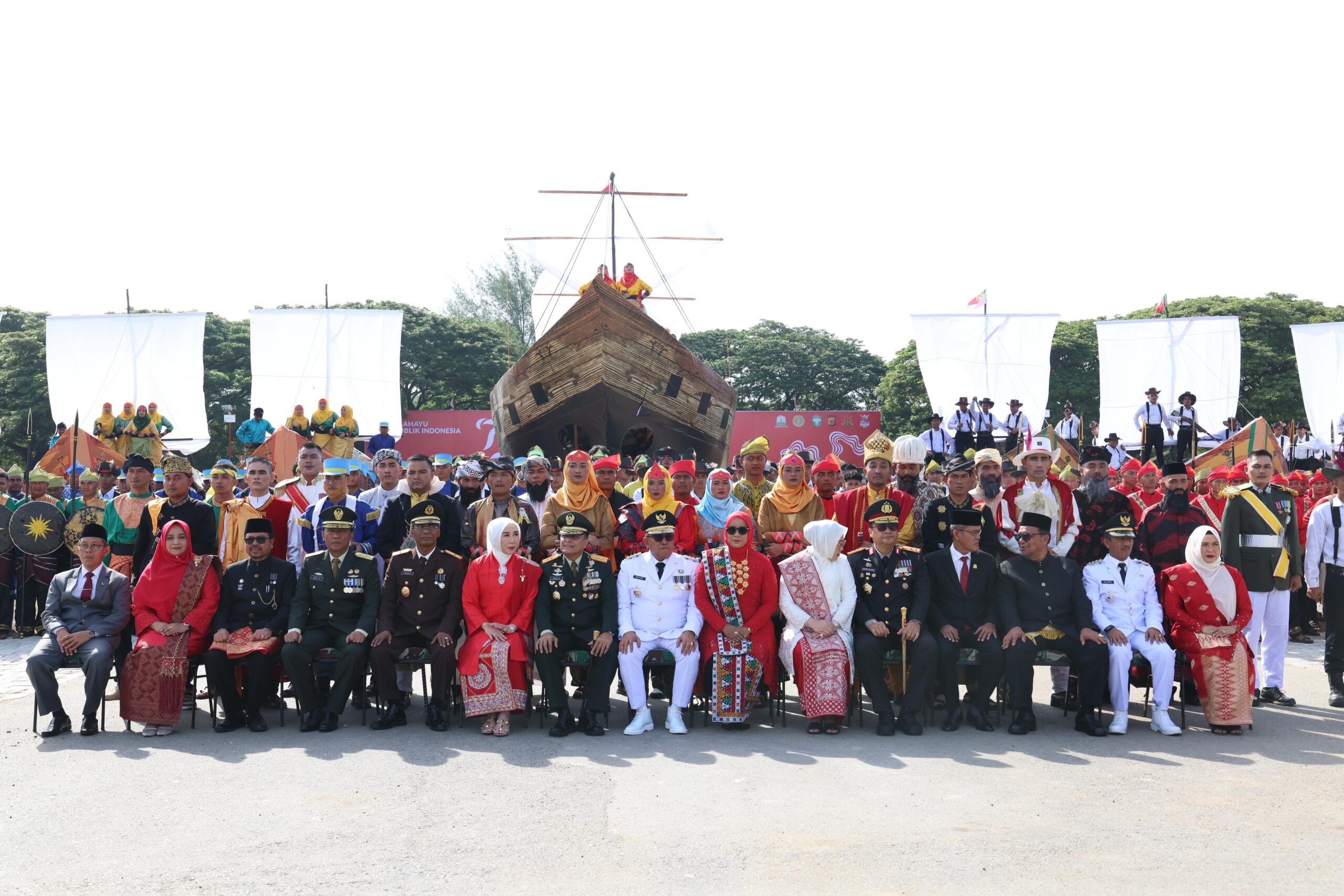 Penjabat (Pj) Gubernur Aceh, Bustami Hamzah, bersama istri, Mellani Subarni, serta unsur Forum Koordinasi Pimpinan Daerah (Forkopimda) Aceh, hingga Pj Sekda Aceh secara langsung menyerahkan cenderamata tersebut kepada para ahli waris dan keluarga pahlawan. Kehadiran para tokoh penting dalam prosesi ini mencerminkan penghormatan dan penghargaan yang mendalam terhadap jasa-jasa yang telah diberikan oleh para pahlawan dalam memperjuangkan kemerdekaan Indonesia.