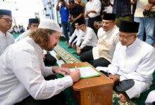 DISTORI.ID – Rangkaian perayaan Hari Ulang Tahun Republik Indonesia ke-79 di Aceh diwarnai dengan prosesi penyerahan cenderamata kepada keluarga pahlawan, perintis kemerdekaan, veteran, dan warakawuri. Acara ini berlangsung Sabtu 17 Agustus 2024 di lobi Meuligo Gubernur Aceh, tepat setelah pelaksanaan upacara bendera di Lapangan Blang Padang, Banda Aceh.