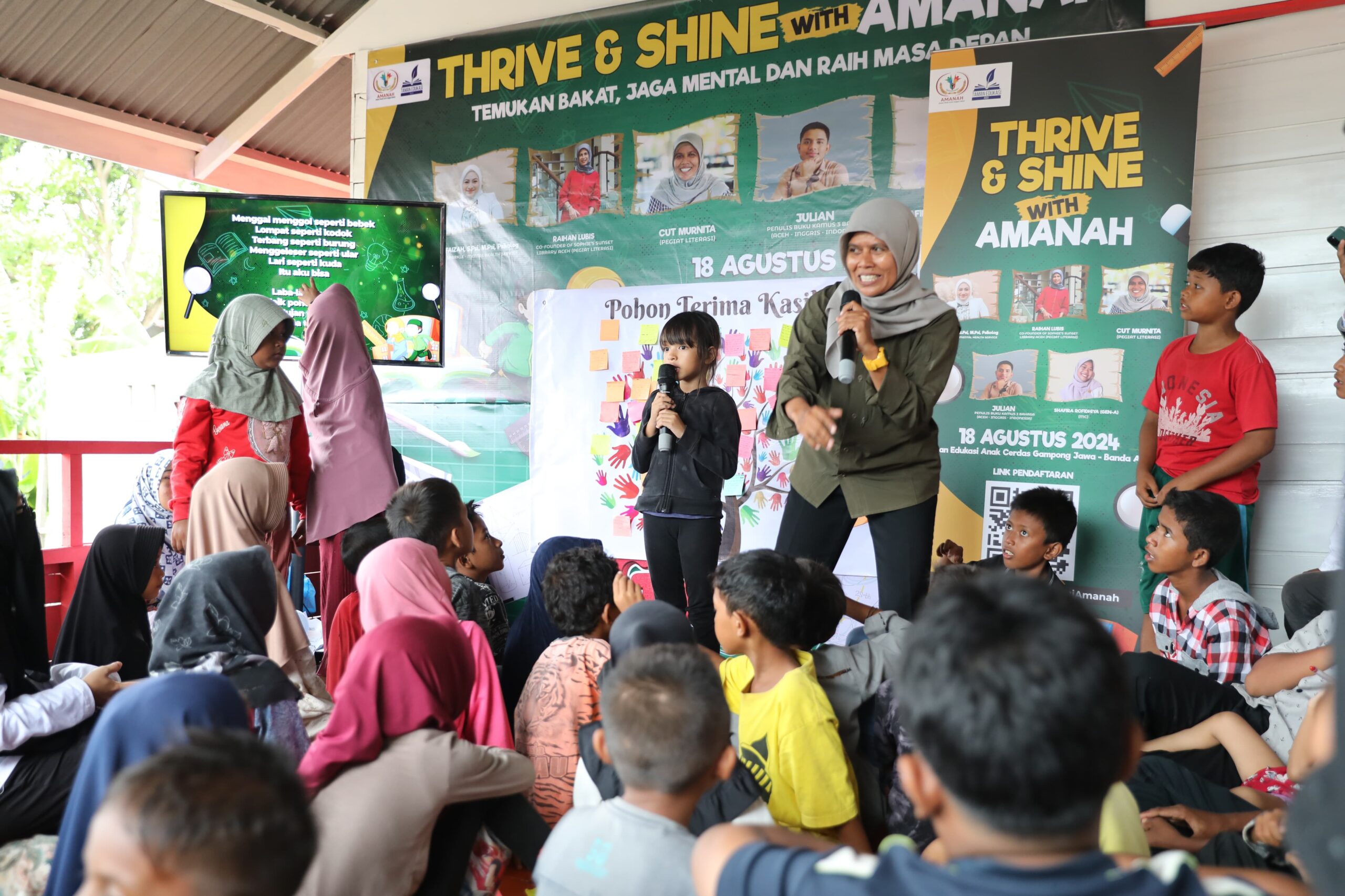 DISTORI.ID – Anak-anak di Gampong Jawa, Banda Aceh, antusias mengikuti kegiatan edukasi dan literasi yang dilakukan Aneuk Muda Aceh Unggul Hebat (AMANAH), Minggu (18/8/2024). Kegiatan bertajuk “Thrive & Shine With AMANAH” memotivasi mereka untuk mengembangkan minat dan bakatnya.