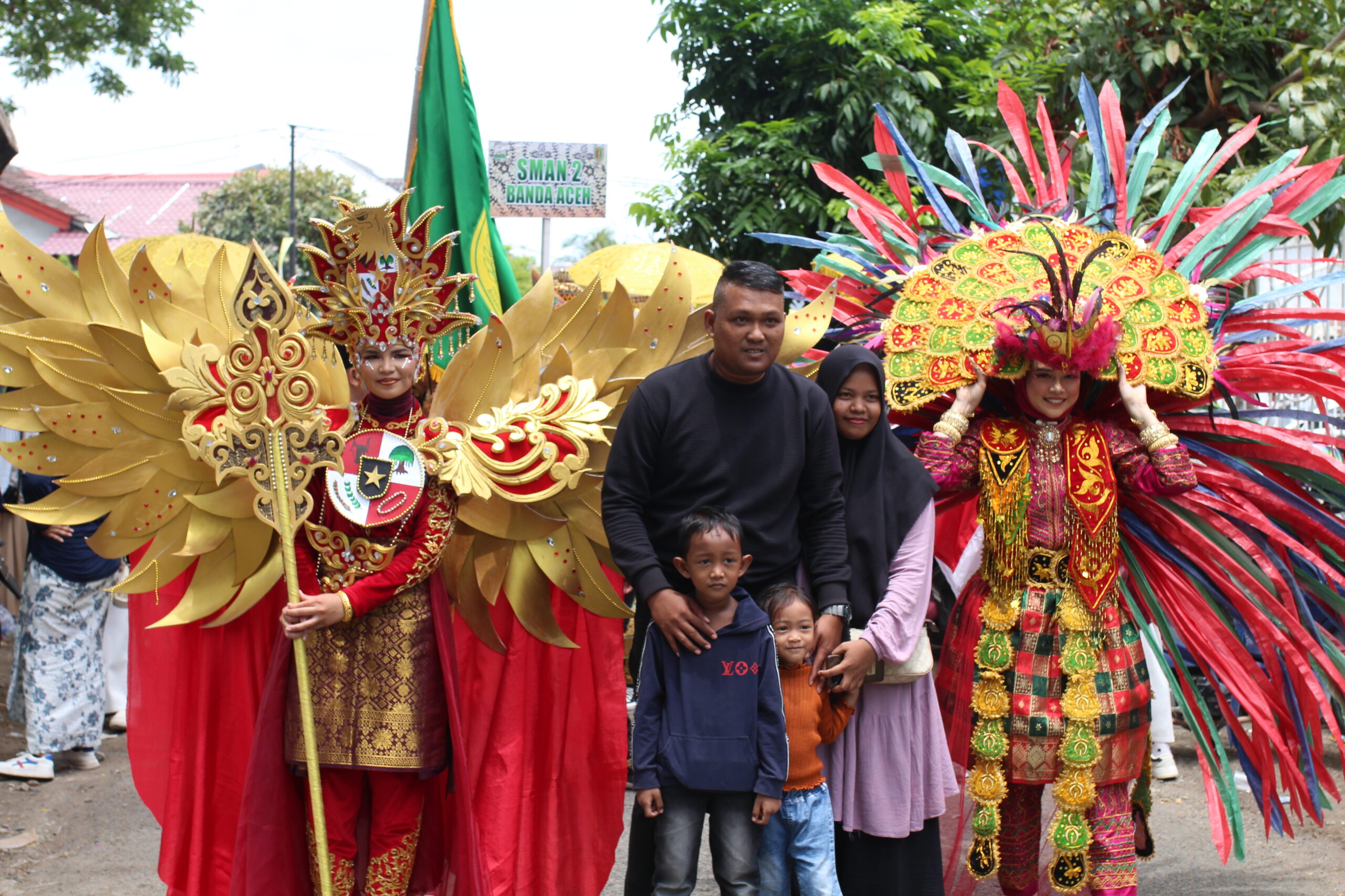 Dengan mengusung tema “Bhinneka Tunggal Ika” dan motto “Wujudkan Generasi Emas dengan Menjunjung Tinggi Adat dan Budaya Indonesia”, SMAN 2 Banda Aceh tampil memukau dengan partisipasi 31 siswa dan siswi yang mengenakan berbagai ragam busana adat dari seluruh Nusantara.