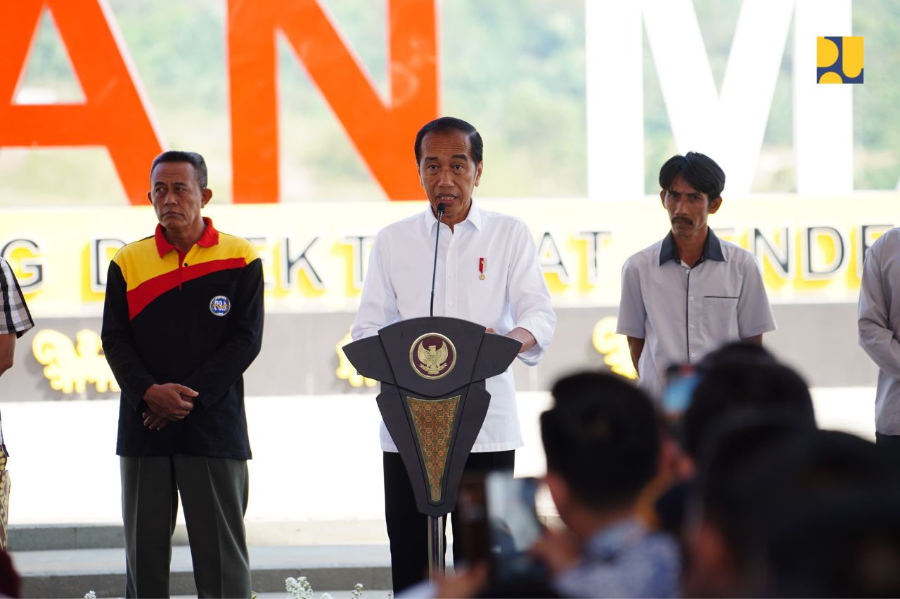 “(Manfaat) yang pertama sebagai air baku untuk kehidupan kita, kedua irigasi bagi sawah-sawah yang kita miliki, dan ketiga untuk mereduksi banjir kalau memang di daerah itu masih ada banjir,” tambah Presiden Jokowi.