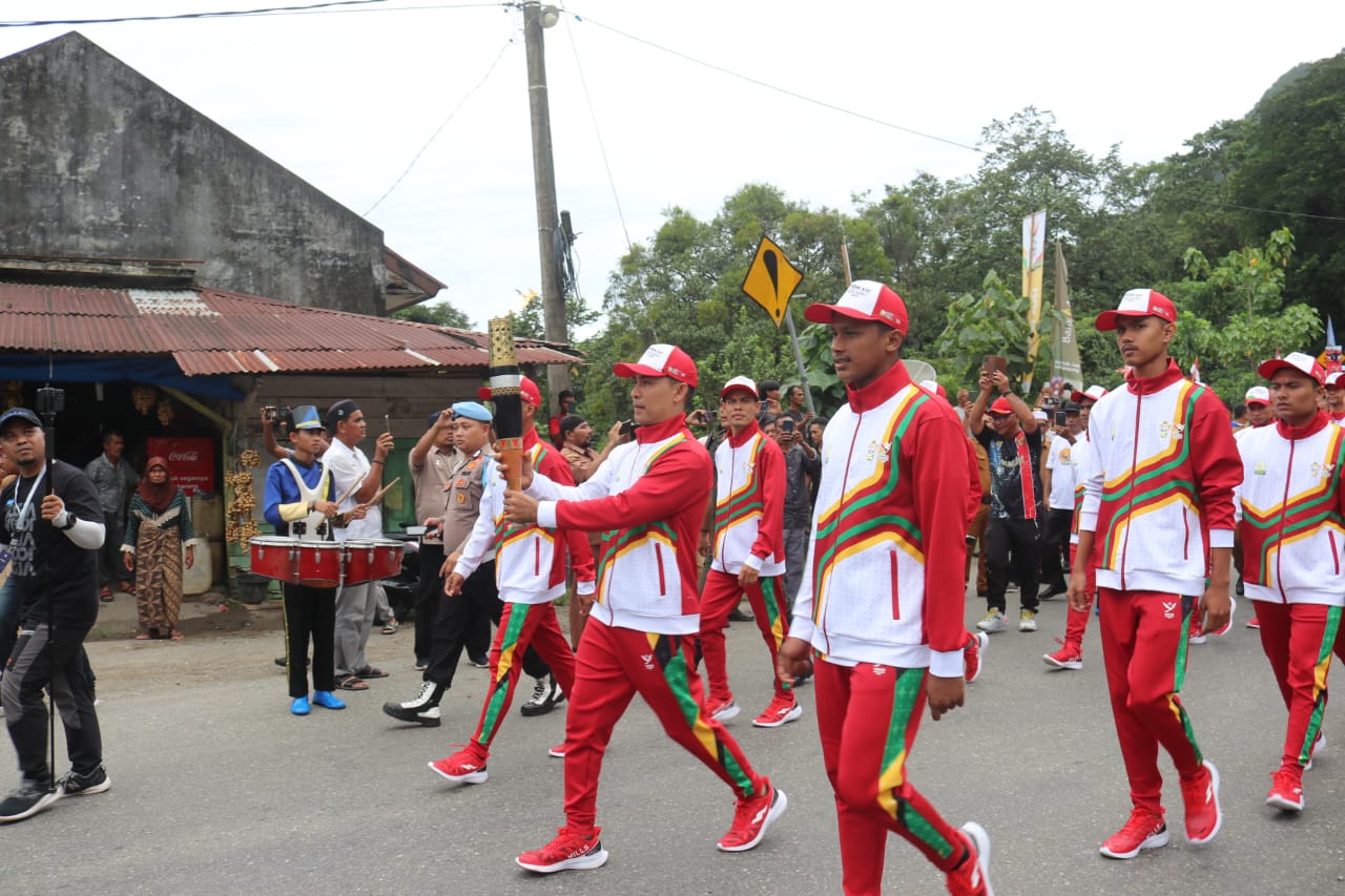 DISTORI.ID – Puluhan warga memadati jalan untuk menyaksikan arak-arakan Kirab Api PON Aceh-Sumut yang melintas di kaki Gunung Geurutee, tepatnya di Gampong Babah Ie, Kecamatan Jaya, Aceh Jaya, pada Selasa (27/8/2024).