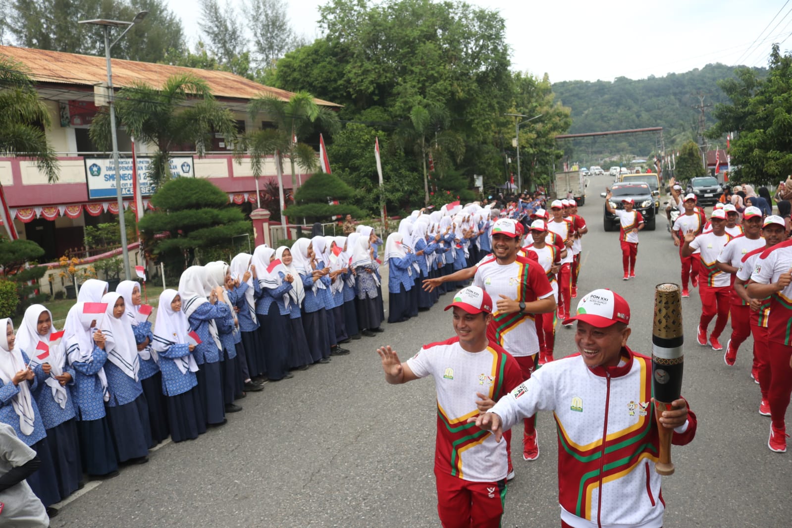 Ribuan Pelajar Aceh Selatan Turun ke Jalan Sambut Kirab Api PON 2024