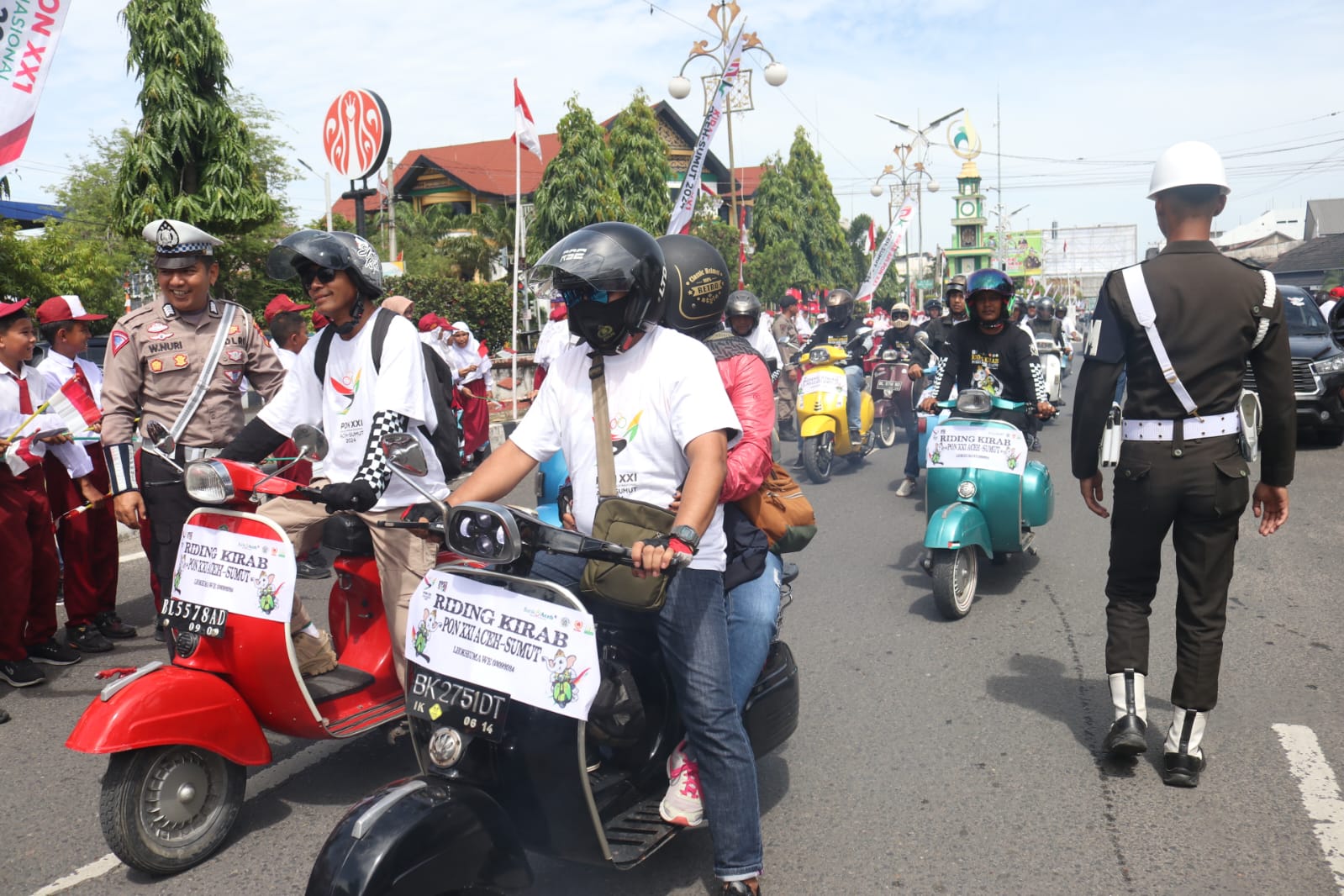 Menariknya, kirab Api PON dihadiri oleh atlet legendaris Kota Lhokseumawe, Azhari, yang memimpin arak-arakan obor bersama 20 pelari lainnya, serta rombongan atlet pencak silat dan komunitas Vespa Kota Lhokseumawe.