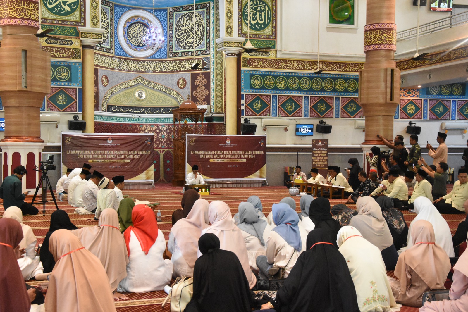 DISTORI.ID – Empat kandidat Pasangan Calon (Paslon) Wali Kota dan Wakil Wali Kota Banda Aceh dinyatakan ‘mampu’ saat pelaksanaan Uji Mampu Baca Al-Qur’an di Masjid Al-Makmur, Banda Aceh, Rabu (4/9/2024).