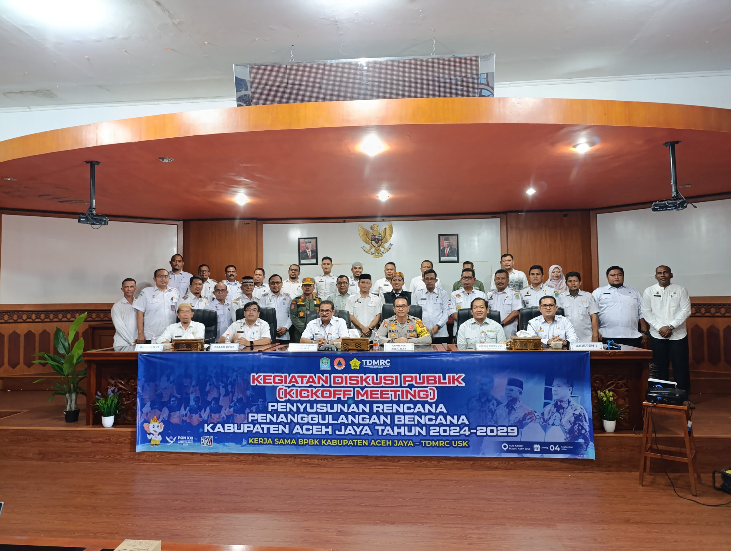 DISTORI.ID – Sekretaris Daerah (Sekda) Kabupaten Aceh Jaya, Asy’ari, membuka Diskusi Publik tentang Penyusunan Rencana Penanggulangan Bencana (RPB) Kabupaten Aceh Jaya tahun 2024-2029 yang berlangsung di Aula Setdakab Aceh Jaya pada Rabu, 4 September 2024.