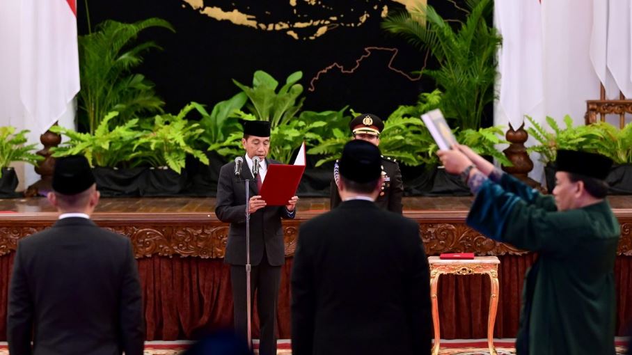 Presiden Jokowi pun mengambil sumpah jabatan para pejabat yang dilantik.