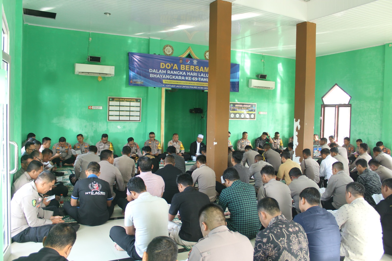 Kasatlantas Polres Aceh Jaya Iptu Muhammad Hisam menjelaskan, acara Doa Bersama ini merupakan wujud syukur dan harapan agar seluruh personel Satuan Lalu Lintas senantiasa diberkahi dalam menjalankan tugas menjaga keamanan dan ketertiban di jalan raya.