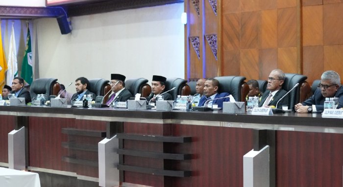 Rapat tersebut berlangsung pada Kamis (12/9/2024) dihadiri oleh Pimpinan dan Anggota Dewan, Penjabat (Pj) Gubernur Aceh, serta bakal calon gubernur dan bakal calon wakil gubernur Aceh yakni Muzakir Manaf alias Mualem-Fadhlullah Dekfad serta Bustami.