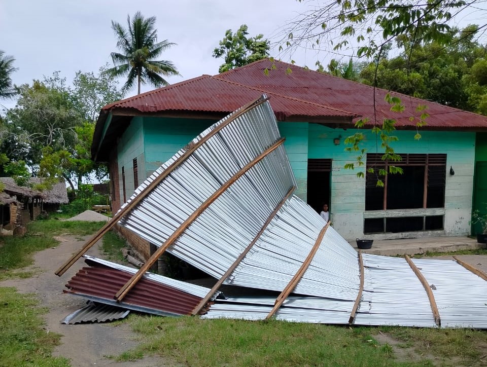 Angin kencang yang melanda wilayah tersebut mengakibatkan dua unit rumah dan satu kios rusak berat, Selasa 17/09/2024 siang.