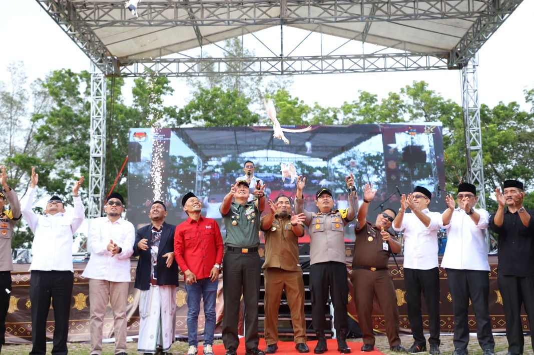 Deklarasi Kampanye Damai dilakukan dengan penandatanganan Naskah Deklarasi Pemilihan Bupati dan Wakil Bupati Aceh Besar serta pelepasan burung merpati yang diikuti oleh 4 (empat) Pasangan Calon Bupati dan Wakil Bupati Aceh Besar 2024, Dandim 0101 KBA Kolonel CZI Widya Wijanarko, Kapolres Aceh Besar AKBP Sujoko, Kajari Aceh Besar Jemmy Novian Tirayudi SH MH jajaran Fokopimda lainnya, partai pendukung dan para undangan.