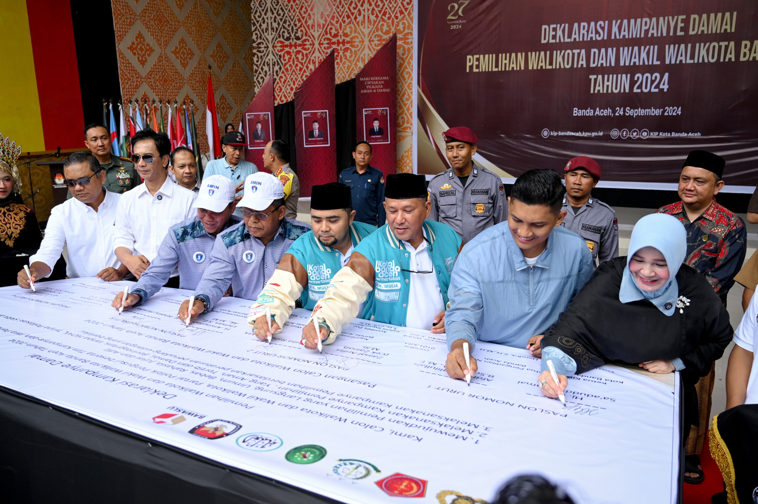Puncak dari kegiatan ini adalah pembacaan naskah deklarasi kampanye damai yang dipandu oleh Ketua KIP Banda Aceh, Yusri Razali. Momen tersebut disaksikan langsung oleh Penjabat (Pj) Wali Kota Banda Aceh, Ketua DPRK, Kapolresta, Dandim 0101/KBA, Kajari, Ketua Pengadilan Negeri, Ketua MPU, serta Ketua Panwaslih.