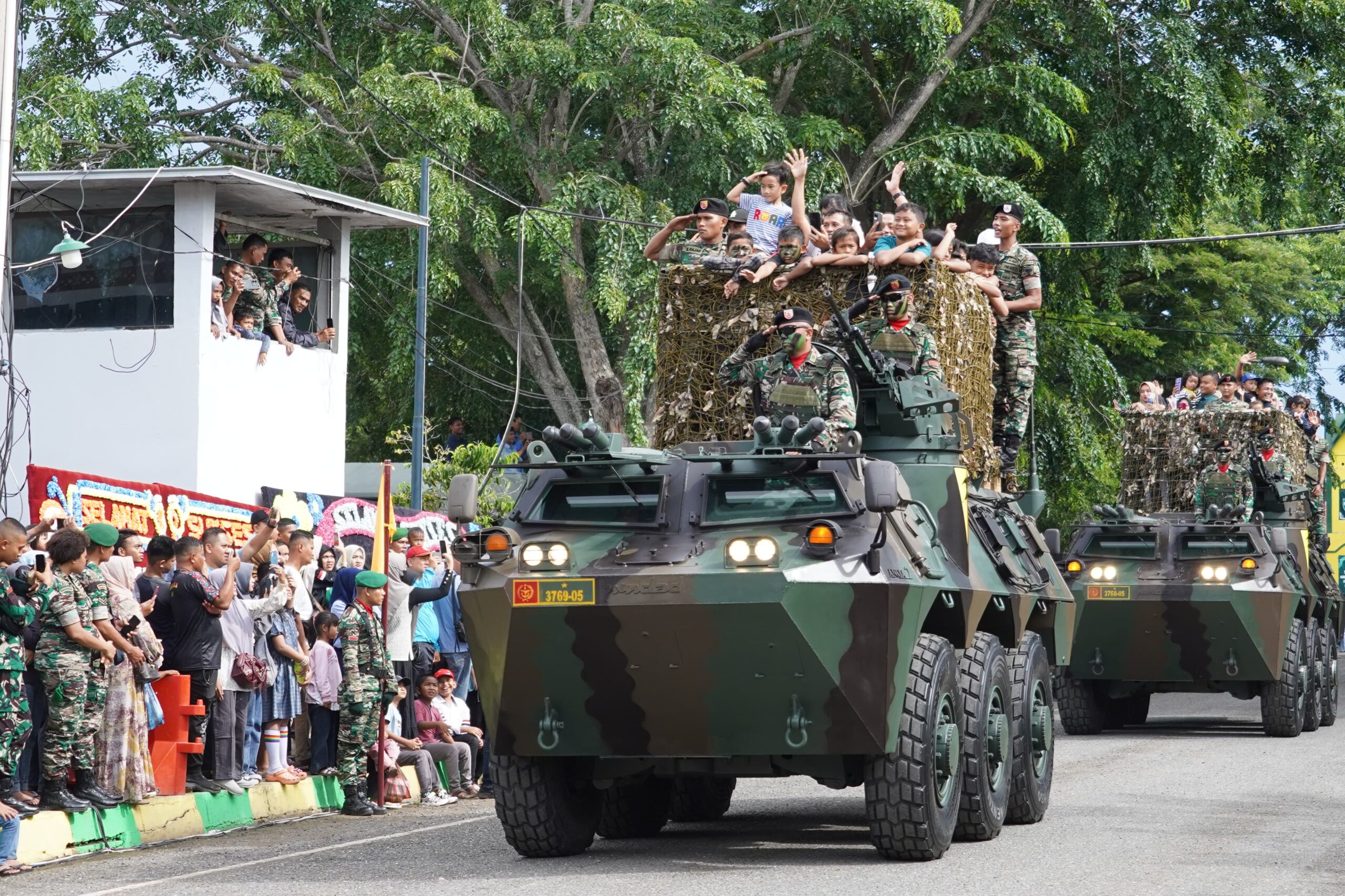 Para prajurit juga melaksanakan defile yang menunjukkan kekuatan dan kesiapan Alutsista TNI, yang memperlihatkan profesionalisme dan kebanggaan seluruh anggota TNI.