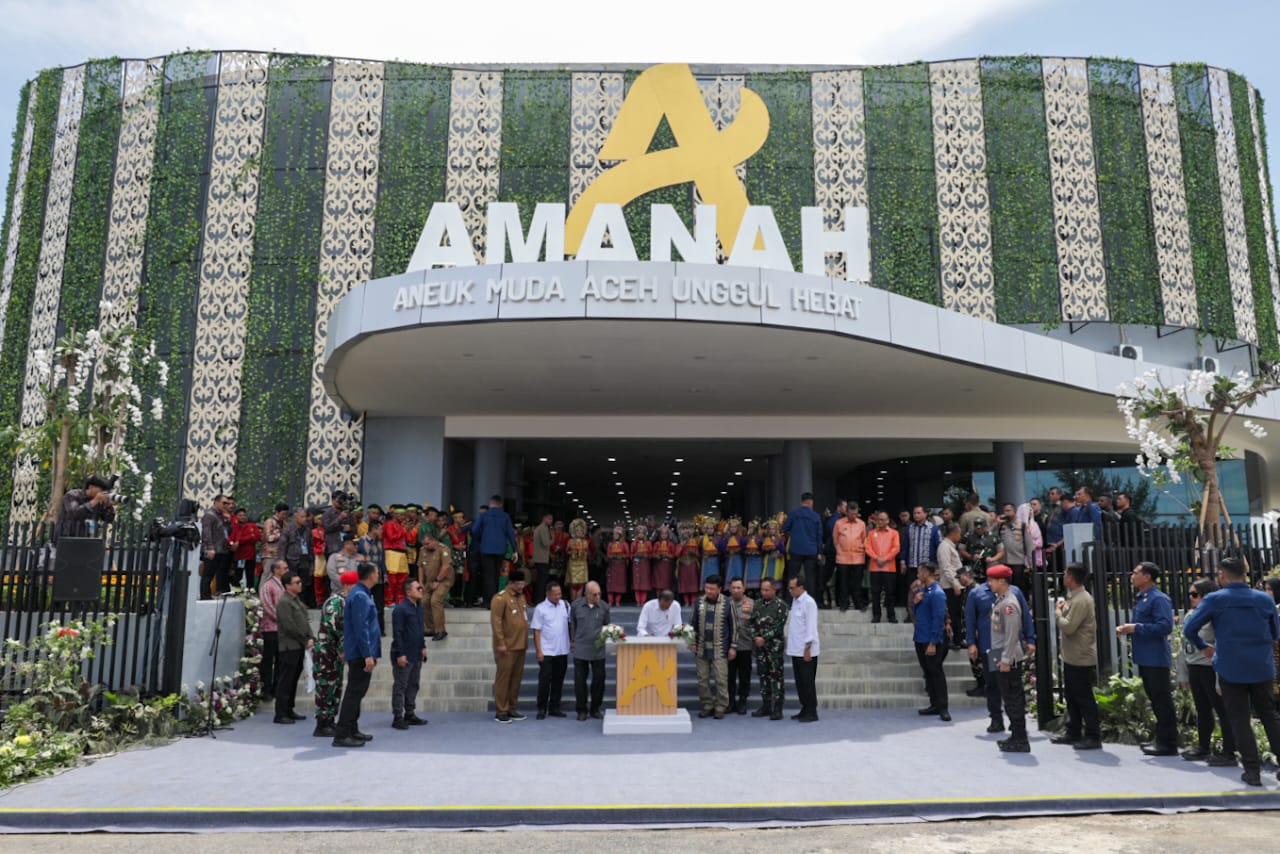 DISTORI.ID – Presiden Joko Widodo meresmikan Gedung Aneuk Muda Aceh Unggul Hebat (AMANAH) di Kawasan Industri Aceh, Selasa (15/10/2024). Fasilitas tersebut melengkapi manfaat program pemberdayaan generasi muda yang telah dijalankan di Provinsi Aceh.