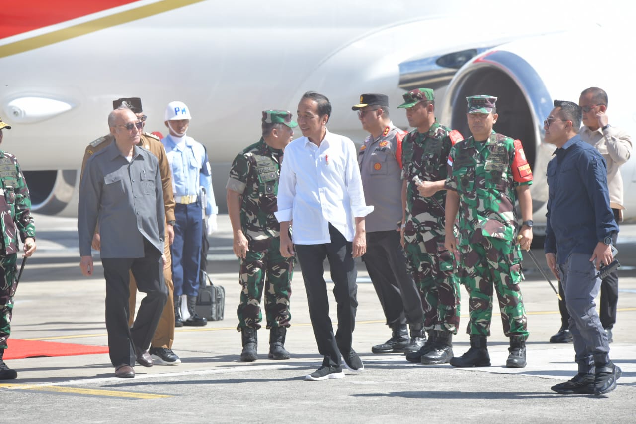 DISTORI.ID – Kapolda Aceh Irjen Achmad Kartiko bersama pejabat forkopimda menyambut kedatangan Presiden RI Joko Widodo beserta di Bandara Sultan Iskandar Muda (SIM) Blang Bintang, Kabupaten Aceh Besar, Selasa, 15 Oktober 2024.