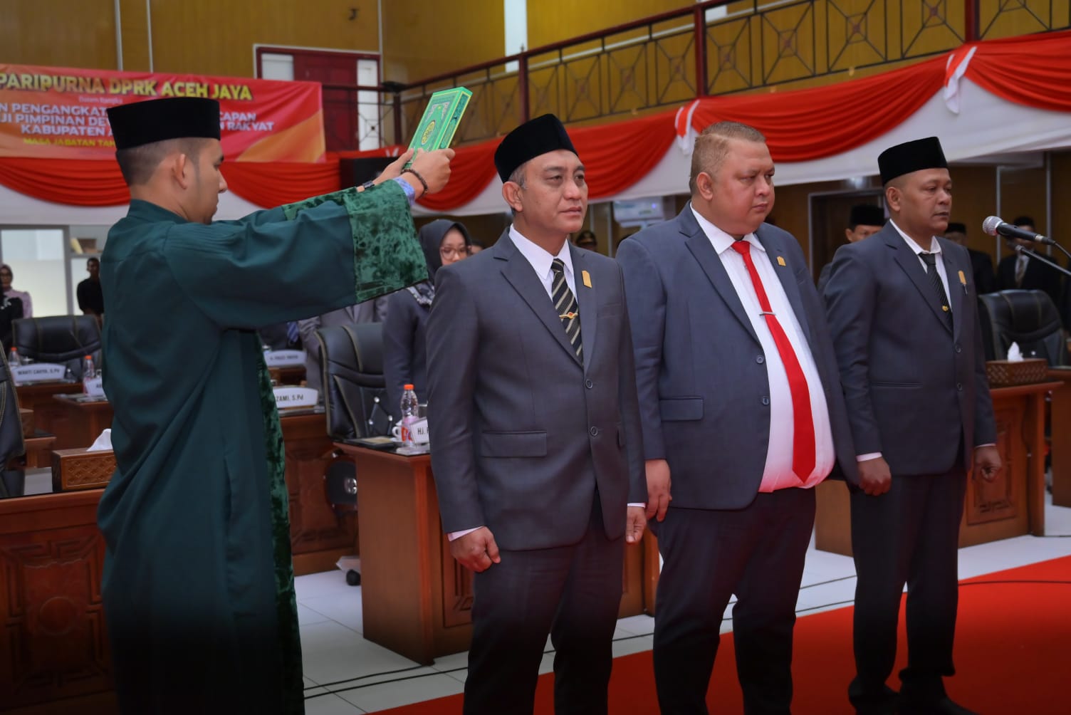 Pelantikan berlangsung dalam Rapat Paripurna DPRK Aceh Jaya yang digelar di Gedung DPRK Aceh Jaya, Kamis, (17/10/2024).