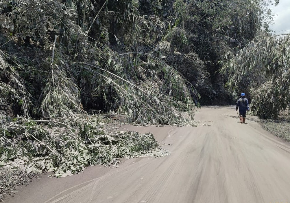 Mobilisasi alat berat telah dilakukan sejak Senin (4/11/2024) dengan mengerahkan 1 unit Wheel Loader untuk pembersihan material vulkanik, 1 unit water tank untuk penyiraman badan jalan, 1 unit truck crane, 1 unit pick up, dan 1 unit chain saw untuk kegiatan pemotongan ranting pohon. Selain itu juga dilakukan pengerahan tenaga kerja sebanyak 20 orang.