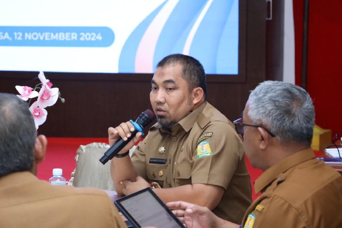 DISTORI.ID – Penjabat (Pj) Bupati Aceh Besar Muhammad Iswanto, memimpin pelaksanaan Rapat Evaluasi Kinerja Organisasi Perangkat Daerah (OPD) tahun 2024 yang diselenggarakan di Meuligoe Bupati Aceh Besar, Kota Jantho, Selasa (12/11/2024) petang.