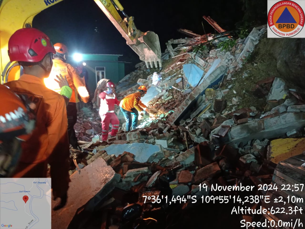 Insiden ini terjadi di Dusun Peniron, Desa Plipiran, Kecamatan Bruno. Data sementara hingga Rabu (20/11), jumlah korban meninggal dunia tiga orang, sedangkan rumah rusak berat sebanyak satu unit.