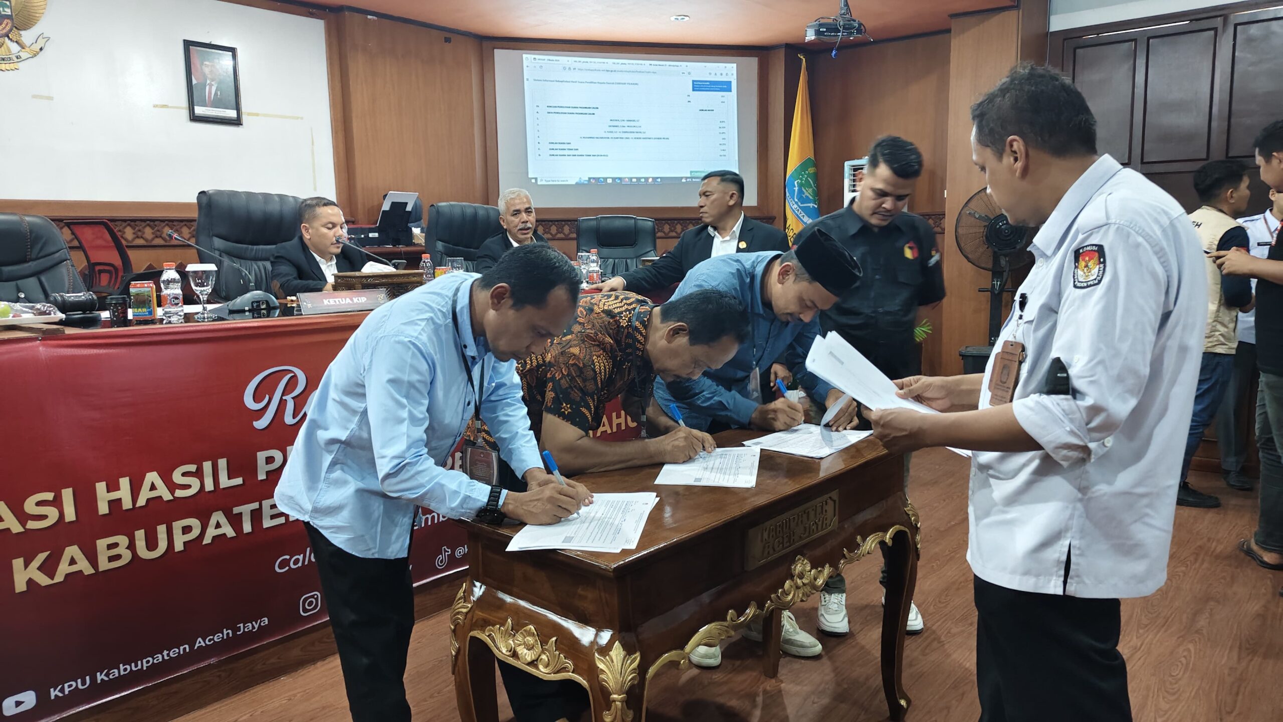 ”Pleno rekapitulasi suara pemilihan Gubernur dan Wakil Gubernur, Bupati dan Wakil tingkat kabupaten Aceh Jaya telah selesai dilaksanakan pada pukul 16.00 WIB berjalan dengan lancar, tanpa ada keberatan dari para saksi maupun Panwaslih,” kata Hendri.