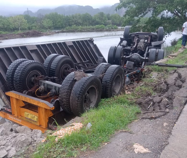 Kecelakaan itu terjadi saat truk kontainer itu berhenti tepat di tepi jalan yang tanahnya tidak stabil.