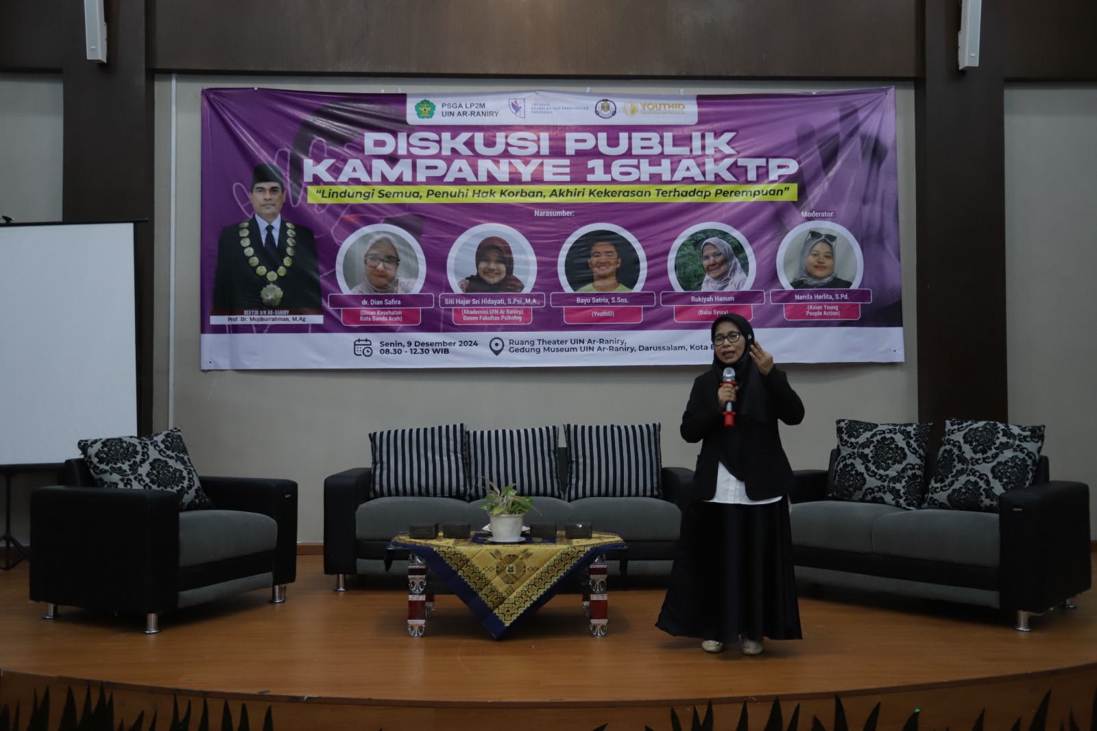 Ketua Panitia, Nashriyah, yang merupakan Kepala PSGA UIN Ar-Raniry, menyampaikan bahwa kegiatan ini merupakan bagian dari rangkaian kampanye 16 HAKTP yang berlangsung setiap tahun mulai 25 November hingga 10 Desember.