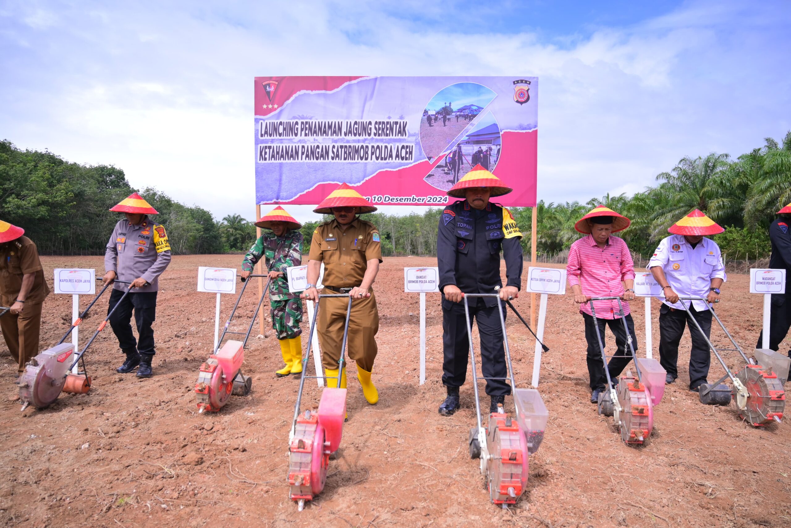 Komandan Satuan (Dansat) Brimob Polda Aceh Kombes Pol Selamat Topan, usai membuka penanaman serentak bersama jajaran Forkopimda Aceh Jaya, menyampaikan, pelaksanaan penanaman jagung ini dalam rangka mendukung program pemerintah tentang ketahanan pangan.