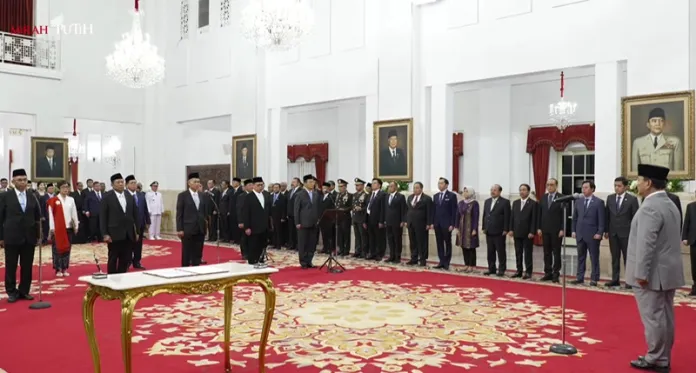 DISTORI.ID – Presiden Republik Indonesia, Prabowo Subianto resmi melantik 5 pimpinan KPK (Komisi Pemberantasan Korupsi) dan Dewan Pengawas atau Dewas KPK di Istana Kepresidenan Jakarta, Gambir, Jakarta Pusat, Senin 16 Desember 2024.