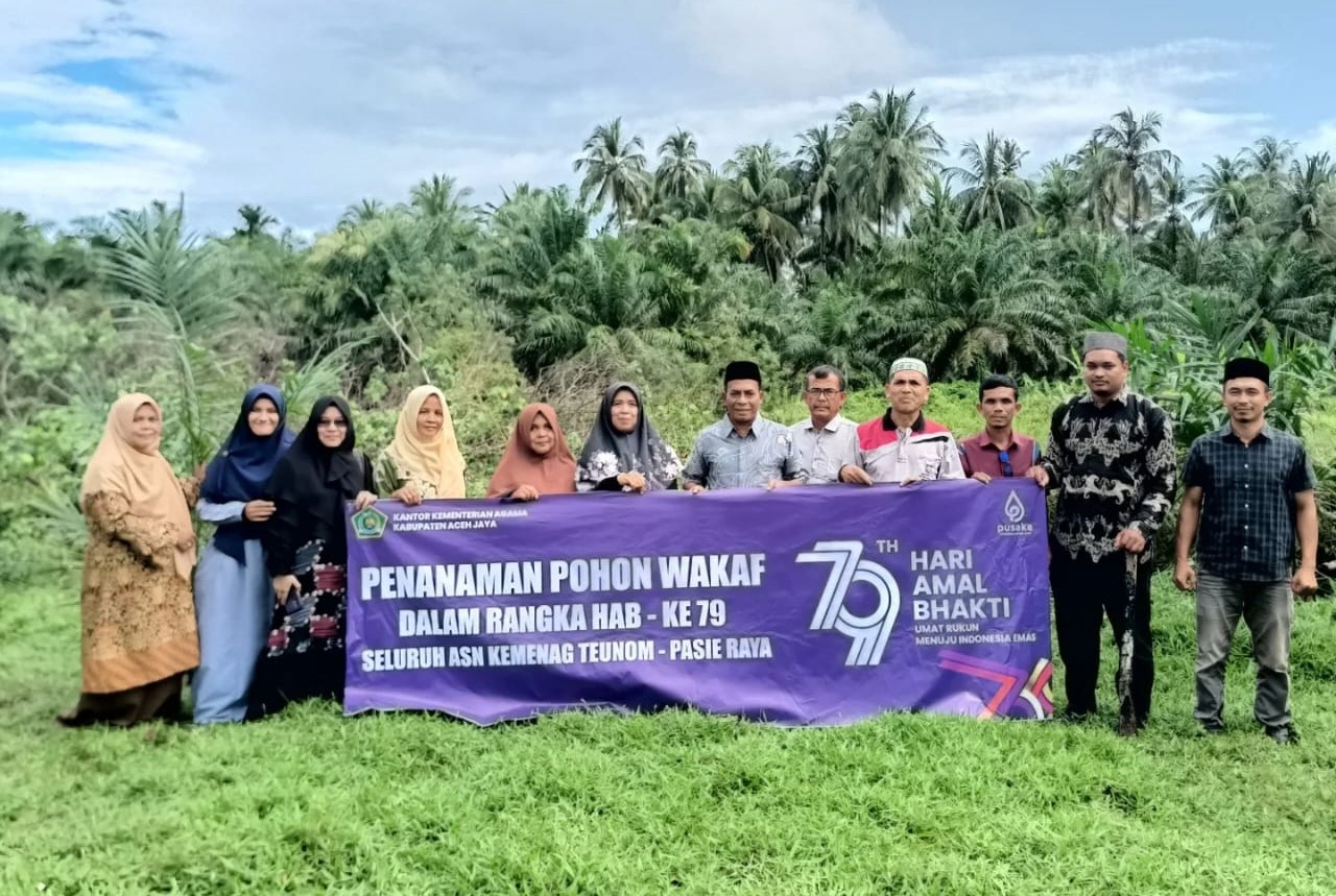 DISTORI.ID – Dalam rangka memeriahkan Hari Amal Bhakti (HAB) ke-79 Kementerian Agama tahun 2025, Aparatur Sipil Negara (ASN) Kementerian Agama Kabupaten Aceh Jaya menggelar penanaman pohon di tanah wakaf dilanjutkan dengan gotong royong, yang dipusatkan di tiap-tiap kecamatan dalam kabupaten Aceh Jaya.