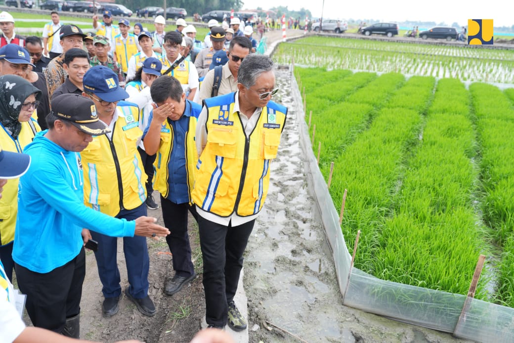 DISTORI.ID – Menteri Pekerjaan Umum (PU) Dody Hanggodo meninjau lokasi percontohan penerapan Irigasi Padi Hemat Air (IPHA) di Daerah Irigasi (D.I) Rentang, Kabupaten Cirebon, Jawa Barat, Sabtu (4/1/2025).