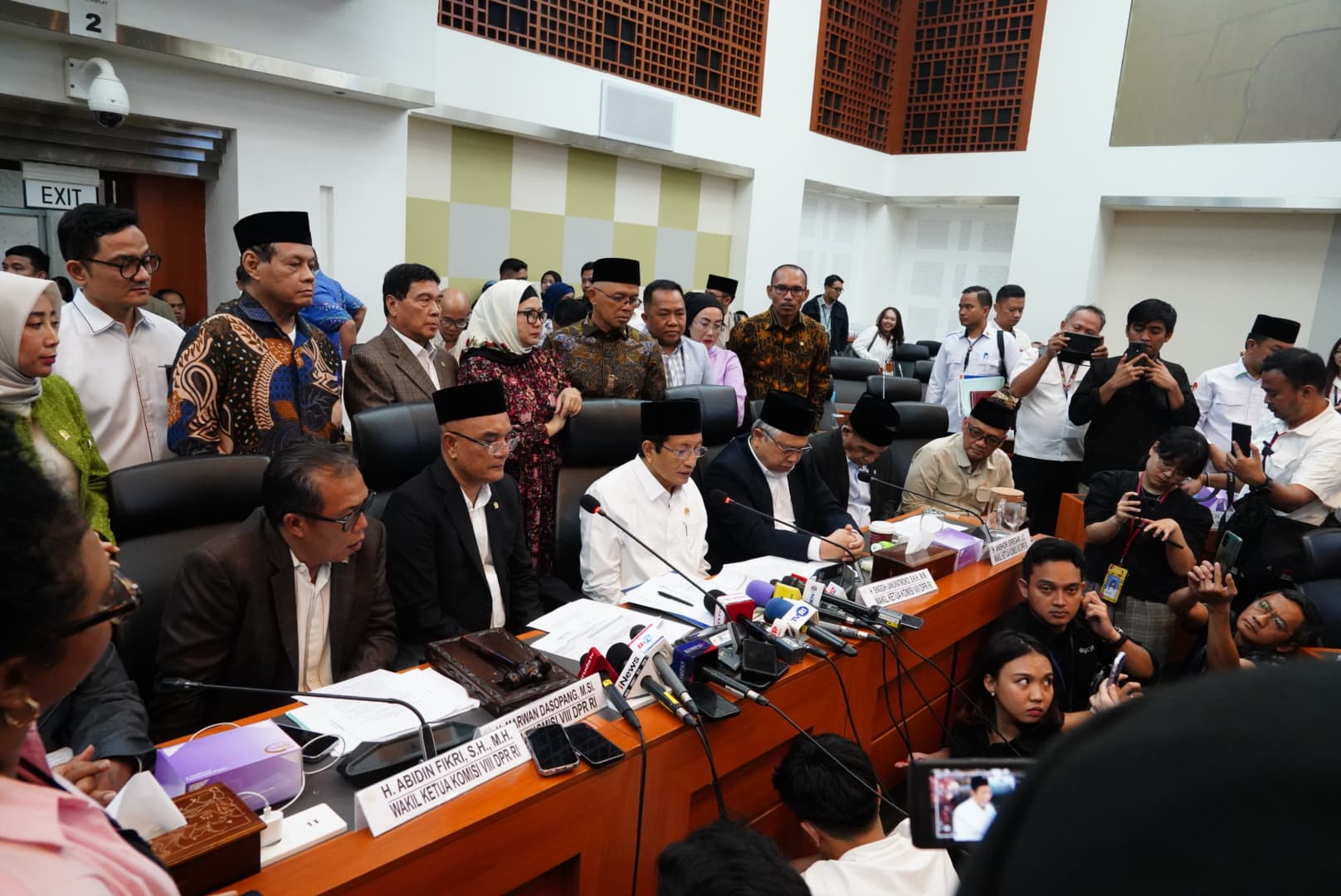 Rapat kerja dipimpin Ketua Komisi VIII DPR, Marwan Dasopang. Hadir, Menag Nasaruddin Umar, Wakil Menteri Agama Romo HR Muhammad Syafi’i, Kepala Badan Penyelenggara Haji (BP Haji) Muhammad Irfan, Kepala Badan Pengelola Keuangan Haji (BPKH) Fadlul Imansyah, Sekjen Kemenag M Ali Ramdhani, serta Dirjen Penyelenggaraan Haji dan Umrah Hilman Latief dan jajarannya.