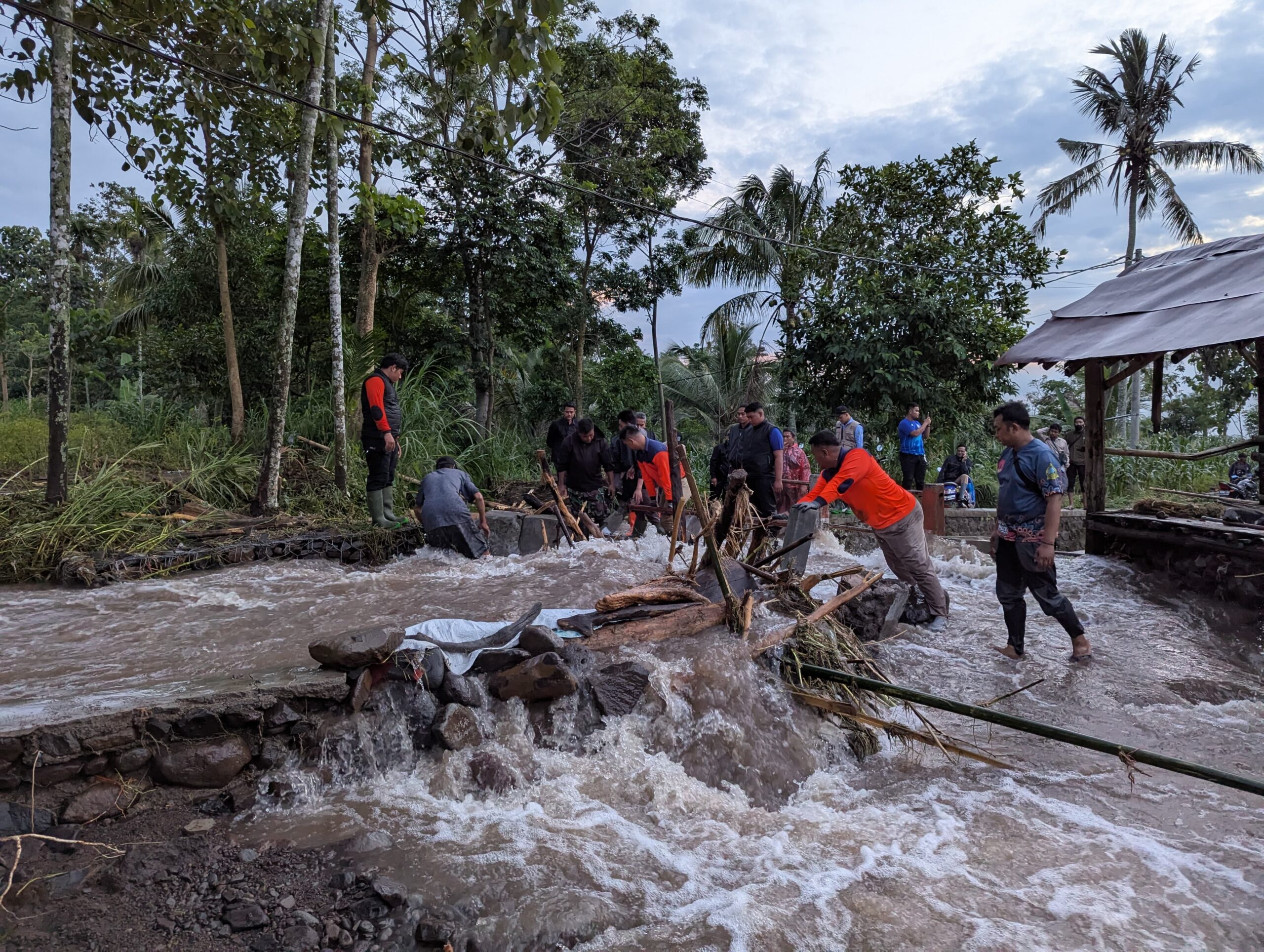 Hal ini menyebabkan air sungai meluap ke permukiman warga di Dusun Peh RT 20 RW 5. Beruntung, tidak ada korban jiwa dalam kejadian ini.