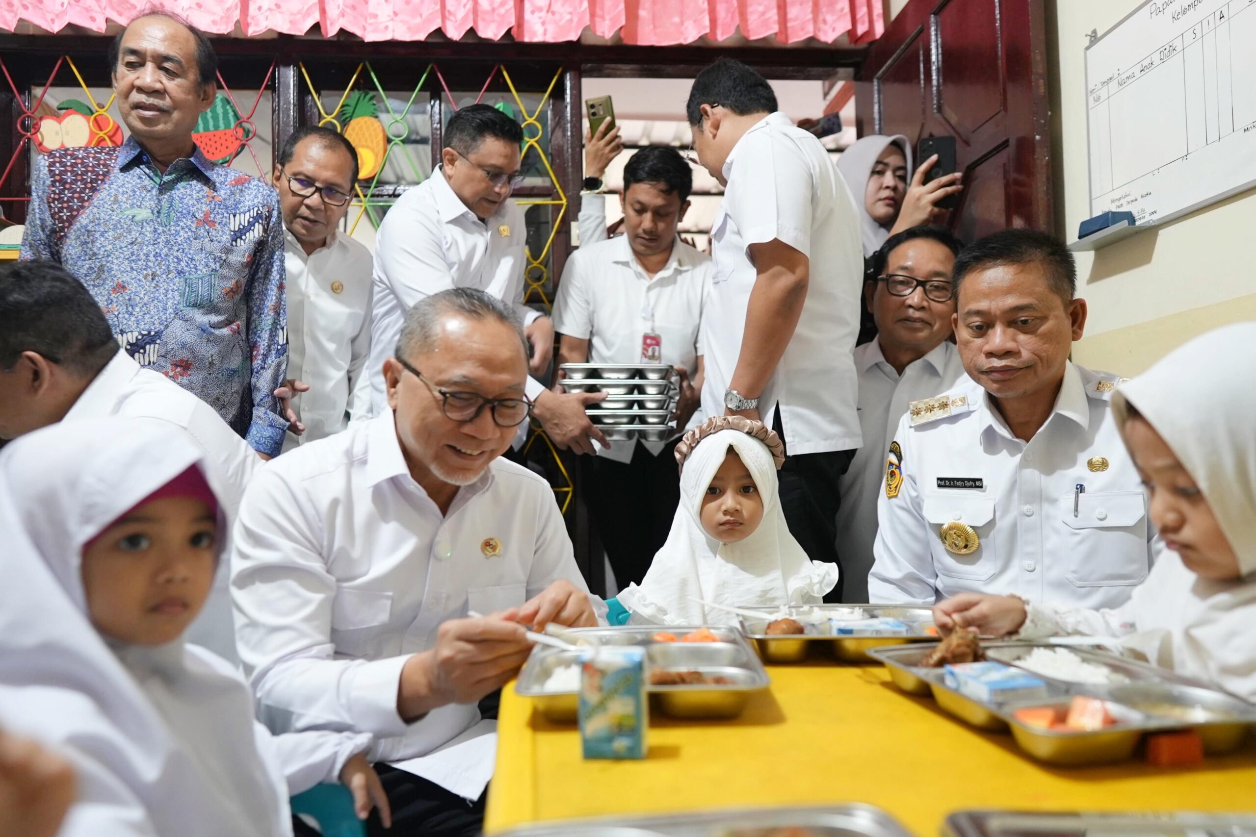 DISTORI.ID – Dalam kunjungan kerjanya di Provinsi Sulawesi Selatan, Menteri Koordinator Bidang Pangan RI Zulkifli Hasan dan Menteri Perdagangan RI Budi Santoso, melakukan peninjauan program Makan Bergizi Gratis (MBG), di TK Asoka, Jalan Perintis Kemerdekaan, Kota Makassar, Jumat, 17 Januari 2025.