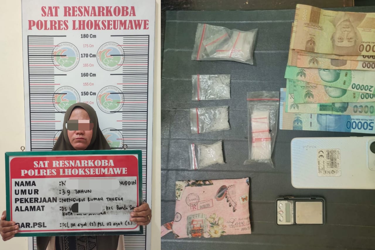 Kasat Narkoba Polres Lhokseumawe AKP Wijaya Yudi Stira Putra mengatakan, pelaku berinisial NL (39), seorang ibu rumah tangga. NL ditangkap di rumahnya di Desa Hagu Teungoh, Kecamatan Banda Sakti, Kota Lhokseumawe.