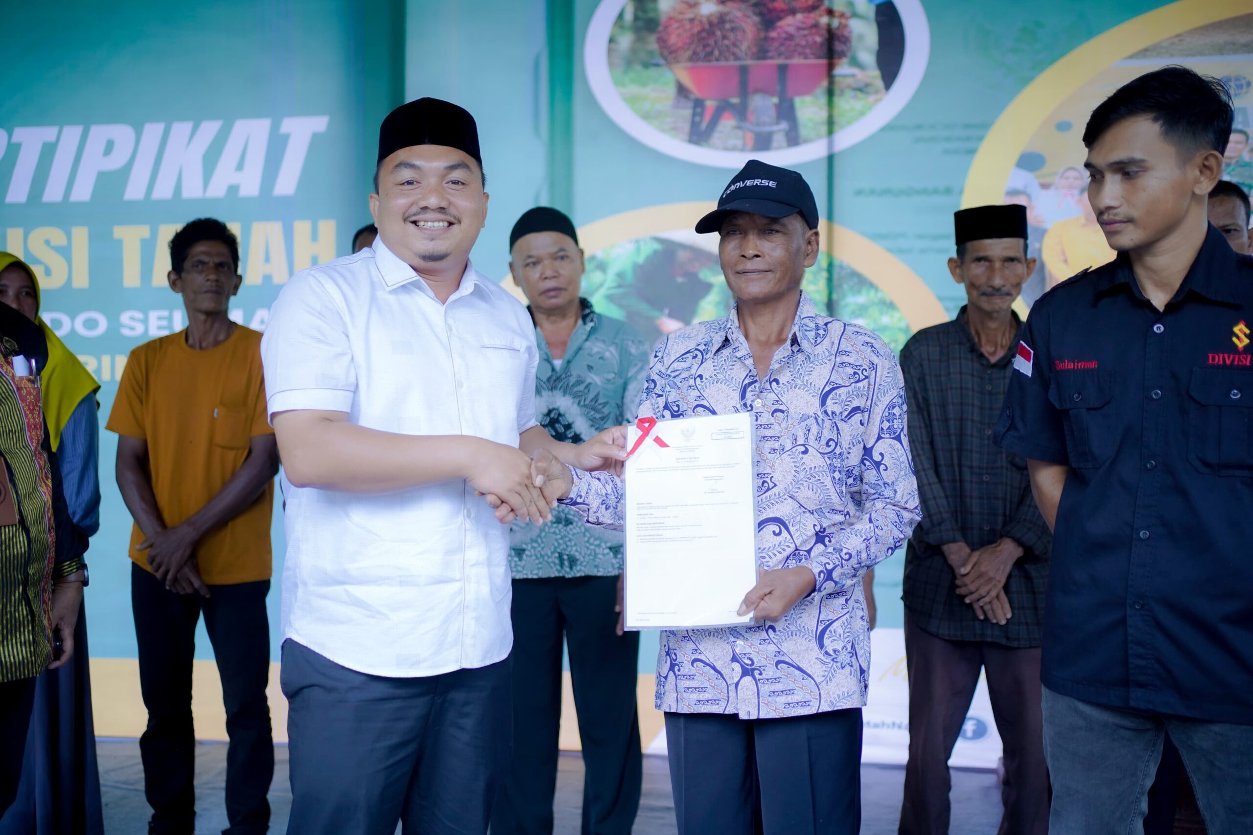 Wakil Ketua DPRK Nagan Raya Hadiri Acara Penyerahan Sertifikat Tanah oleh PT Socfindo ke Petani