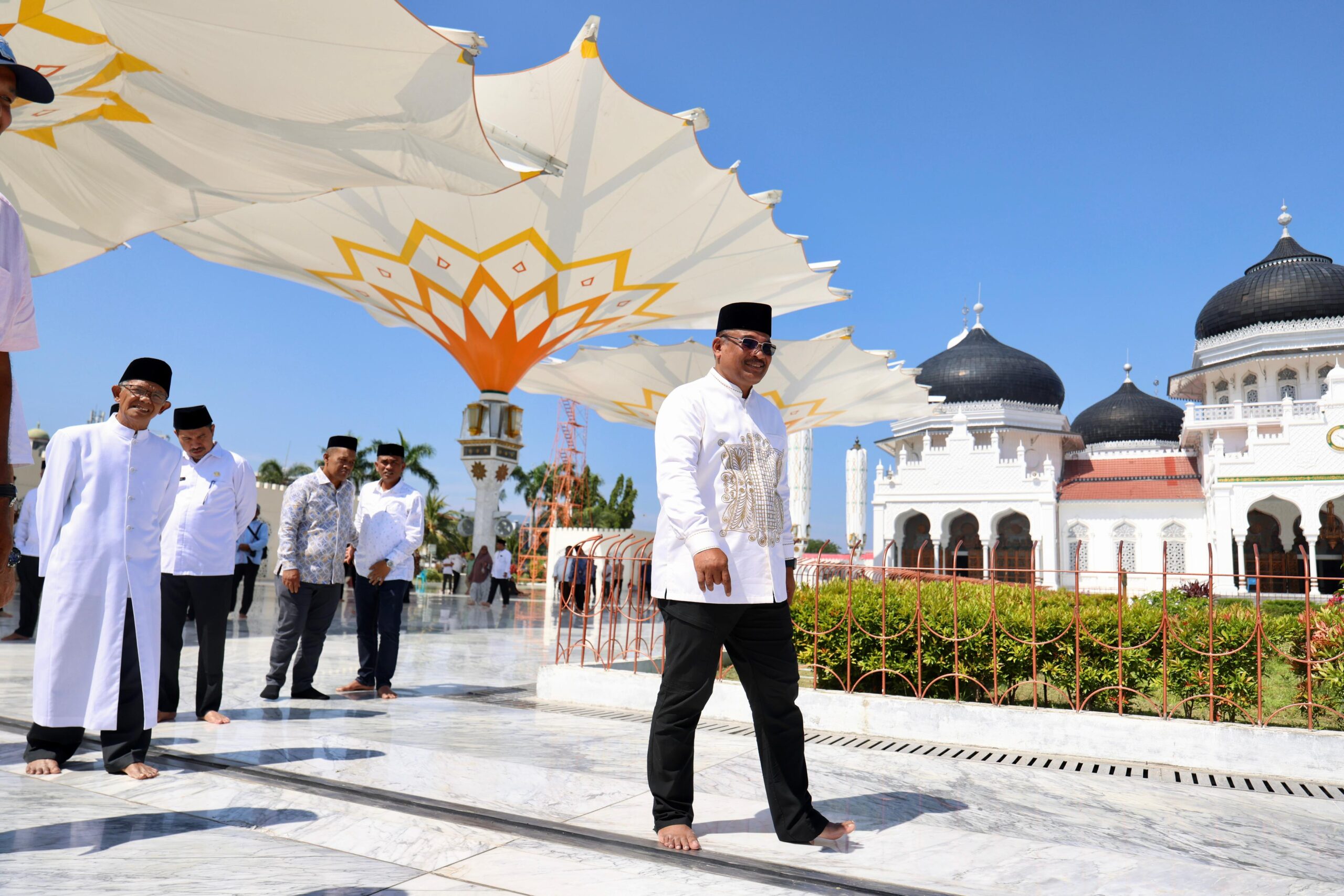 DISTORI.ID – Penjabat Gubernur Aceh, Safrizal meresmikan rehabilitasi enam payung elektrik dan lantai halaman Masjid Raya Baiturrahman, Banda Aceh, Jumat 31 Januari 2025.