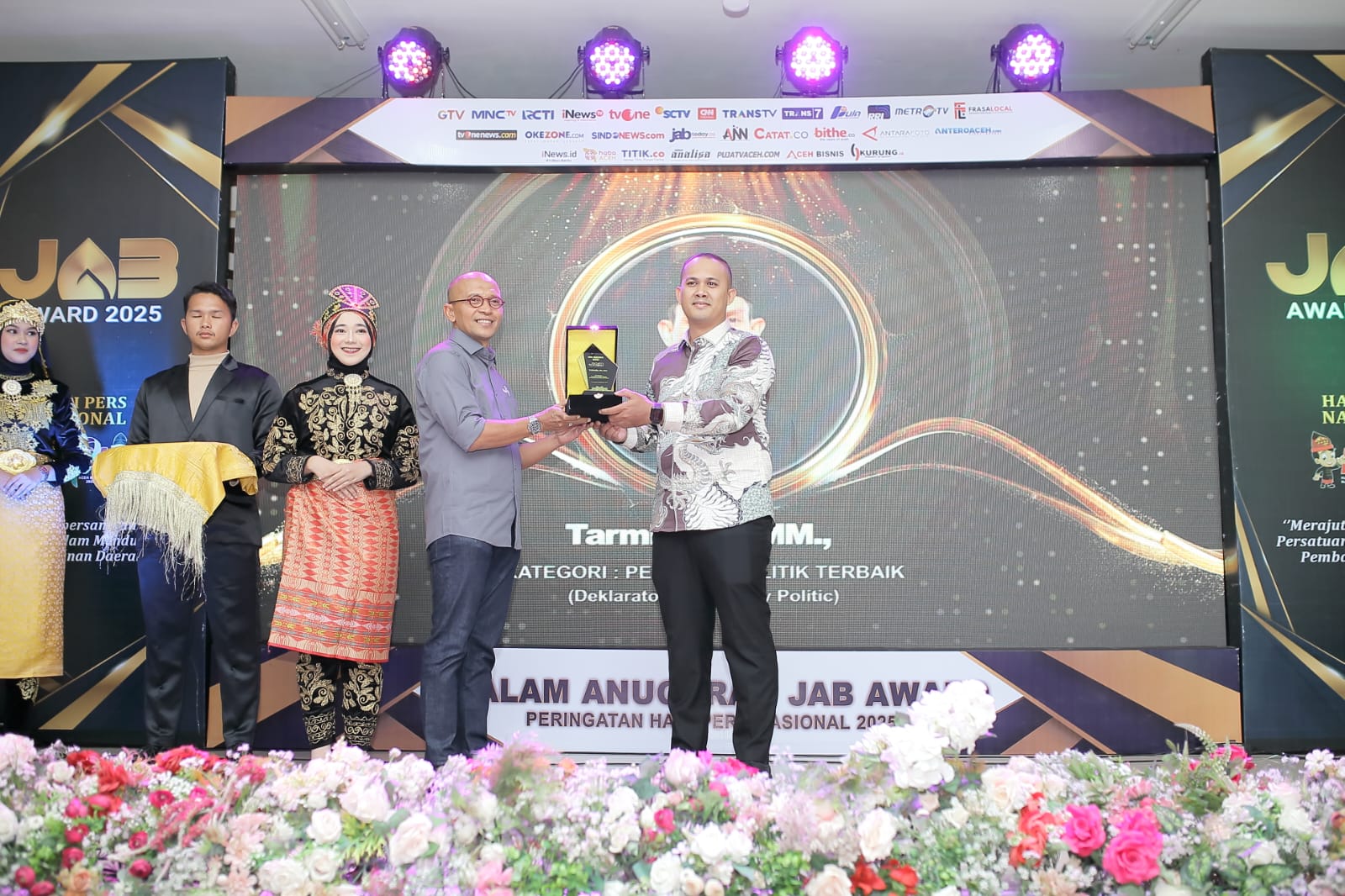 DISTORI.ID –  Bupati Aceh Barat terpilih Tarmizi, SP dinobatkan sebagai Deklarator Anti Money Politic pada malam Anugerah JAB Award 2025, Sabtu (15/2/2025) malam.