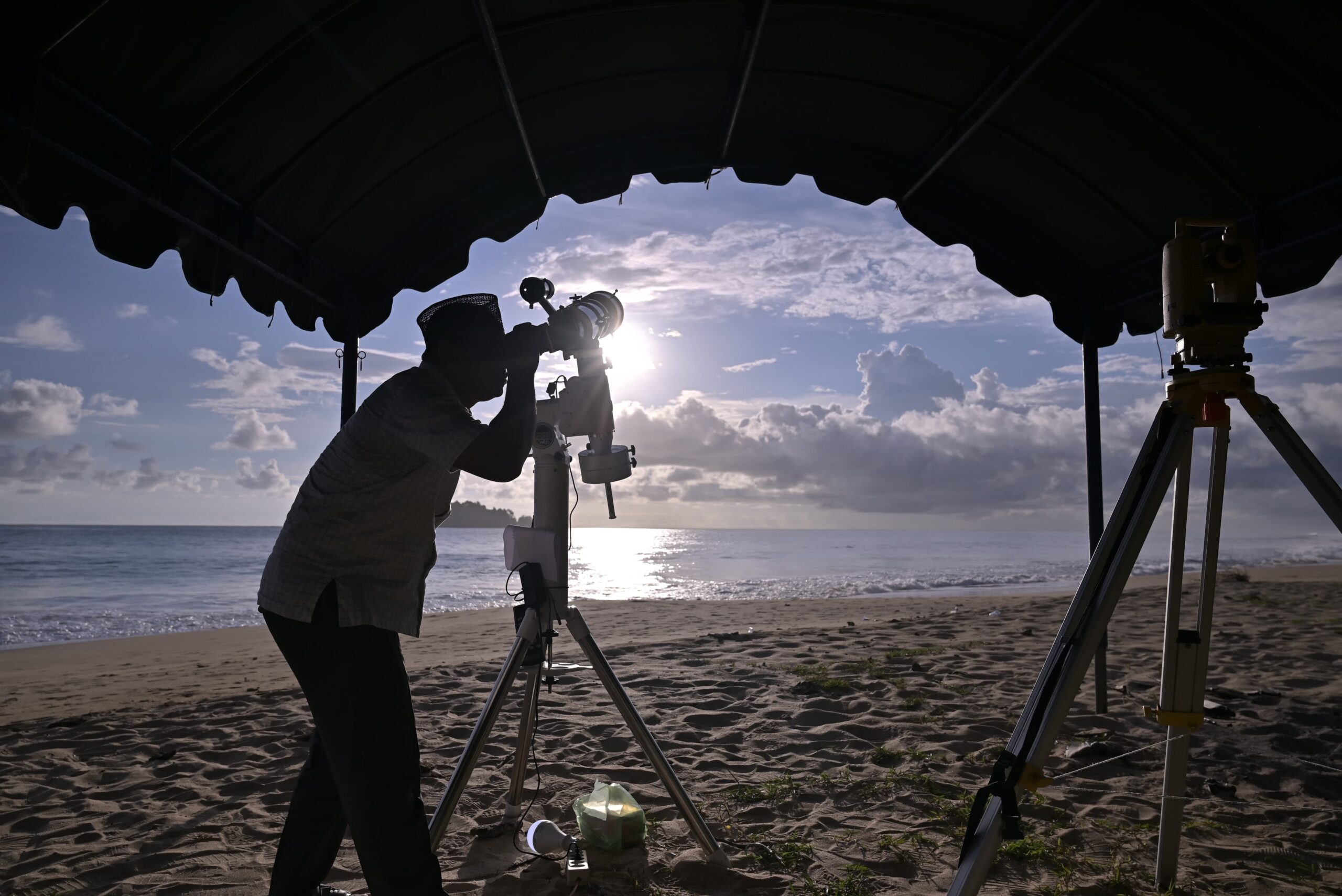 DISTORI.ID – Sejumlah warga, ulama dan petugas badan hisab dan rukyat memantau posisi hilal saat matahari terbenam di Desa Lhokglumpang, Kecamatan Setia Bakti, Aceh Jaya, Aceh, Jumat (28/2/2025).