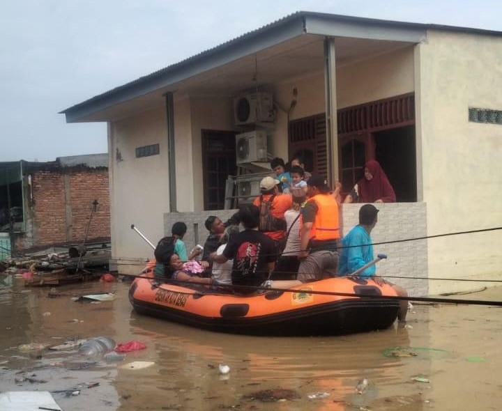 Sebanyak 140 unit rumah terendam dengan ketinggian air mencapai 300 sentimeter. BPBD Kota Bekasi mendistribusikan bantuan logistik dan mengerahkan sejumlah perahu karet untuk evakuasi warga terdampak.