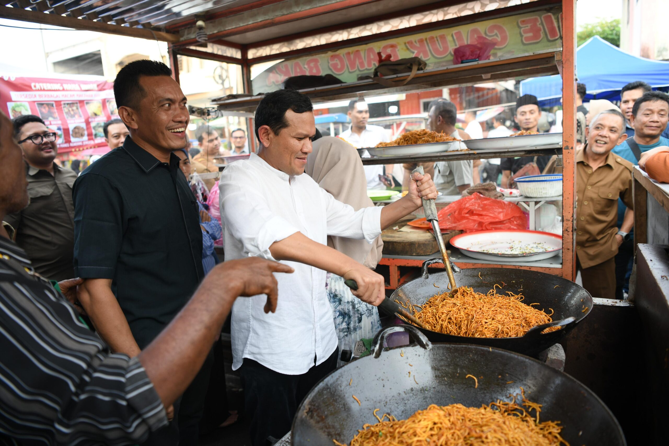 Di Pasar Ramadan, Wagub berbelanja berbagai penganan berbuka, mulai dari mie caleu, lemang, cendol, risol, sambai, kelapa muda, ayam goreng serta berbagai jenis jajanan khas Ramadan lainnya.