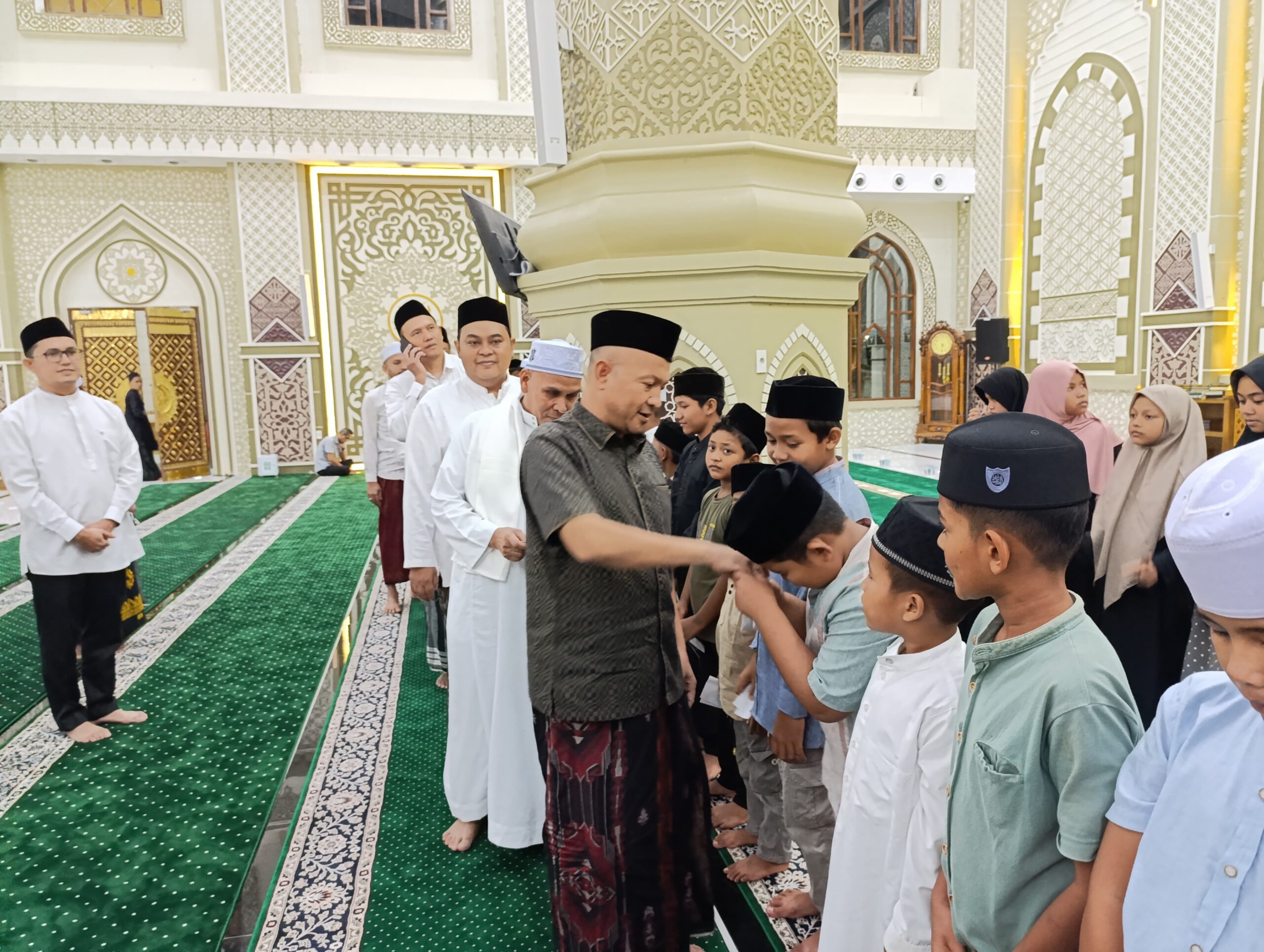 DISTORI.ID – Memperingati Nuzulul Qur’an 1446 H, Bupati Aceh Jaya, Safwandi, menyerahkan santunan kepada puluhan anak yatim di Masjid Agung Baitul Izzah pada Minggu, (16/3/2025).